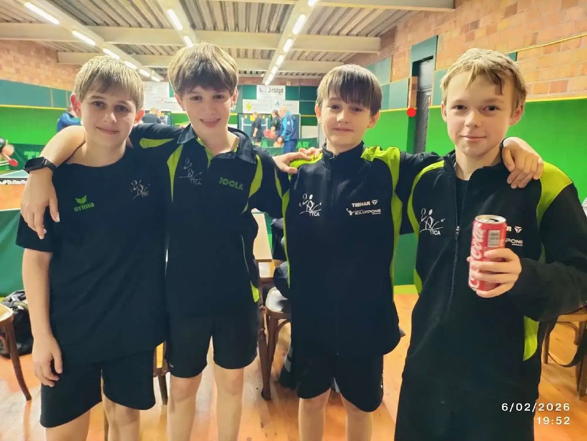 Tenslotte kwamen er nog 2 jeugdploegen in actie op zaterdagnamiddag. In Sint-Truiden stonden bij de +12 Jarne, Fen en Mika tegenover 3x E6. Mika kwam tekort en kon helaas geen winstpartij noteren. Ook voor Fen was de tegenstand te sterk, al hij kon hij in zijn laatste partij wel nog een vijfsetter uit de brand slepen. Jarne bood de meeste weerstand : hij speelde 2 belles en kon er daarvan één winnen. Zo kon hij (omdat ook de dubbel verloren werd) op het einde van de namiddag toch nog de 0 van het bord wegvegen. Eindstand : 9-1. Thomas, Warre en Lander namen het bij de -12 op tegen Bilzen A (E6, NG, NG). Thomas won 2 keer met 0-3 van de 2 NG’s maar verloor helaas met het kleinste verschil in de belle van de E6. Warre en Lander deden identiek hetzelfde : ze wonnen allebei knap 2 matchen tegen een NG : 1 keer met 0-3 en 1 keer met 2-3. Ze boden aardig wat weerwerk tegen de E6 (ze wonnen allebei een set) maar moesten zich uiteindelijk toch gewonnen geven. Omdat de dubbel (met Thomas en Warre) wel verloren ging, werd het uiteindelijk een mooie 4-6 overwinning.
