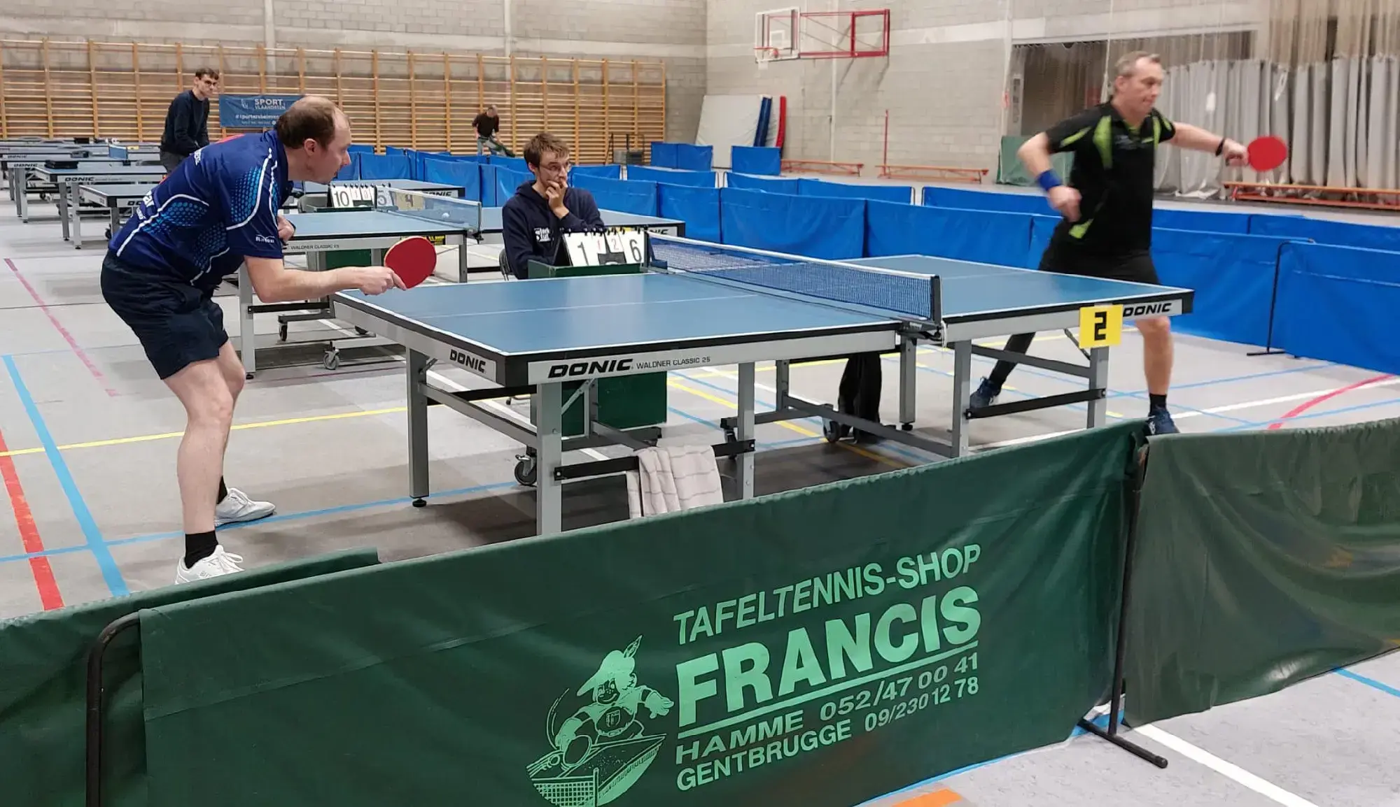 In de voormiddag werden de 25 spelers voor dit tornooi verdeeld in poules van 3 à 4 spelers, volgens het systeem van 2 gewonnen sets. De eerste twee van elke poule gingen door naar de namiddagronde met rechtstreekse uitschakeling. Gelukkig mochten van TTC Aarschot Frank en Jurgen starten in verschillende poules, waar ze beiden als favorieten starten.
